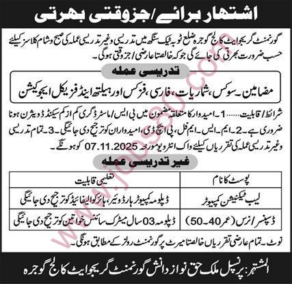 Position: Teaching/Administrative Staff at Government Graduate College Gojra