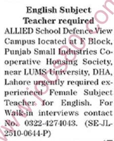 This listing is for Allied School Lahore, Punjab, Pakistan 2025. We encourage you to read carefully and apply if you meet the requirements.