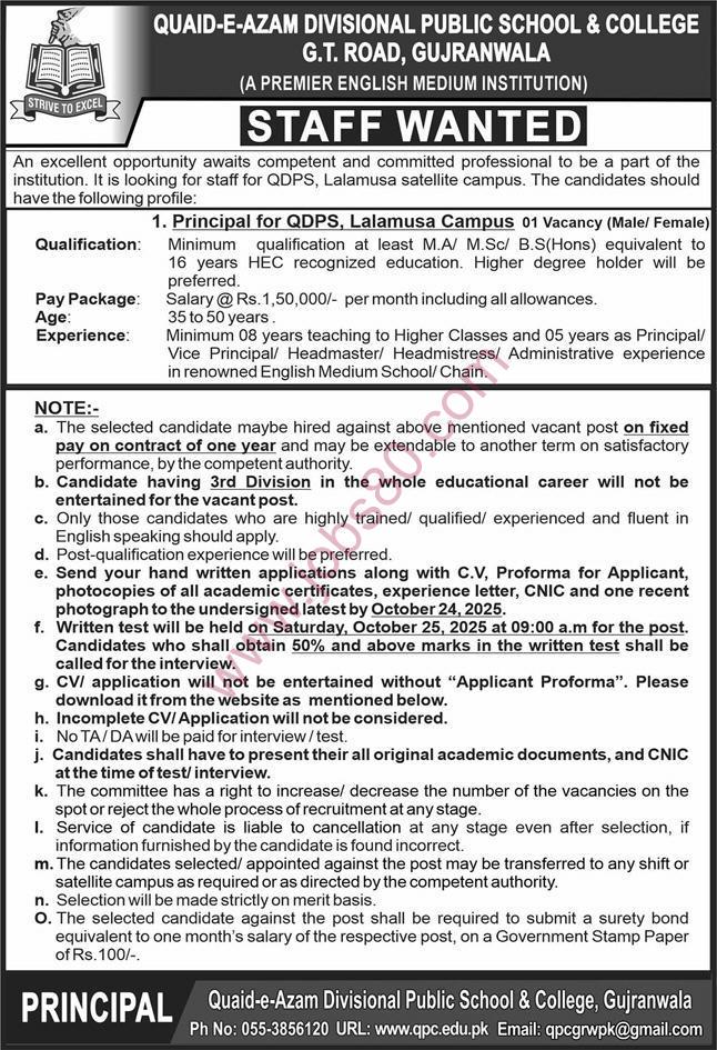 Latest Government Jobs / Quaid e Azam Divisional Public School & College