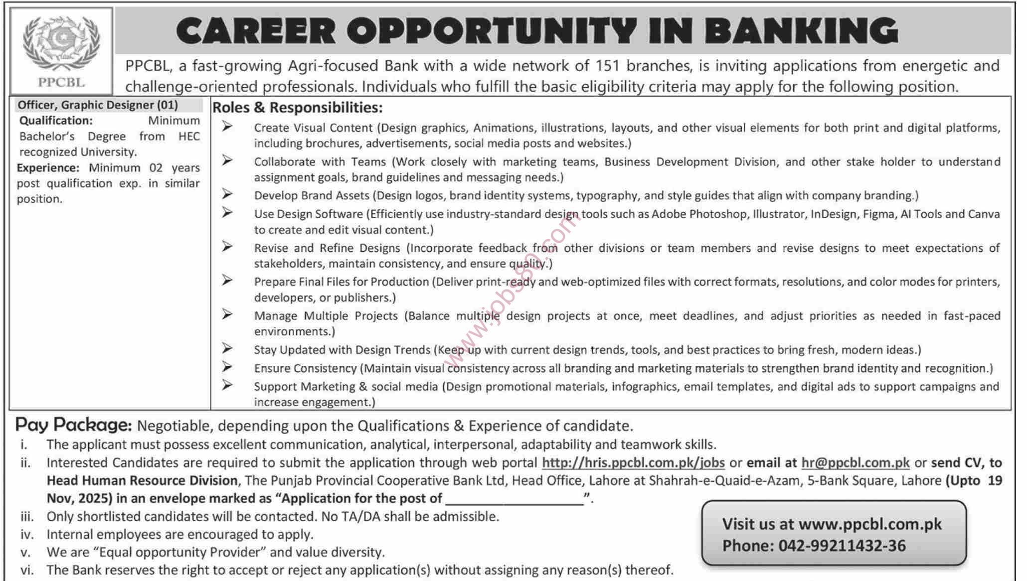 Good academic record (for example, 45% marks or equivalent CGPA) — as seen in earlier PPCBL job listings. jobify.pk
